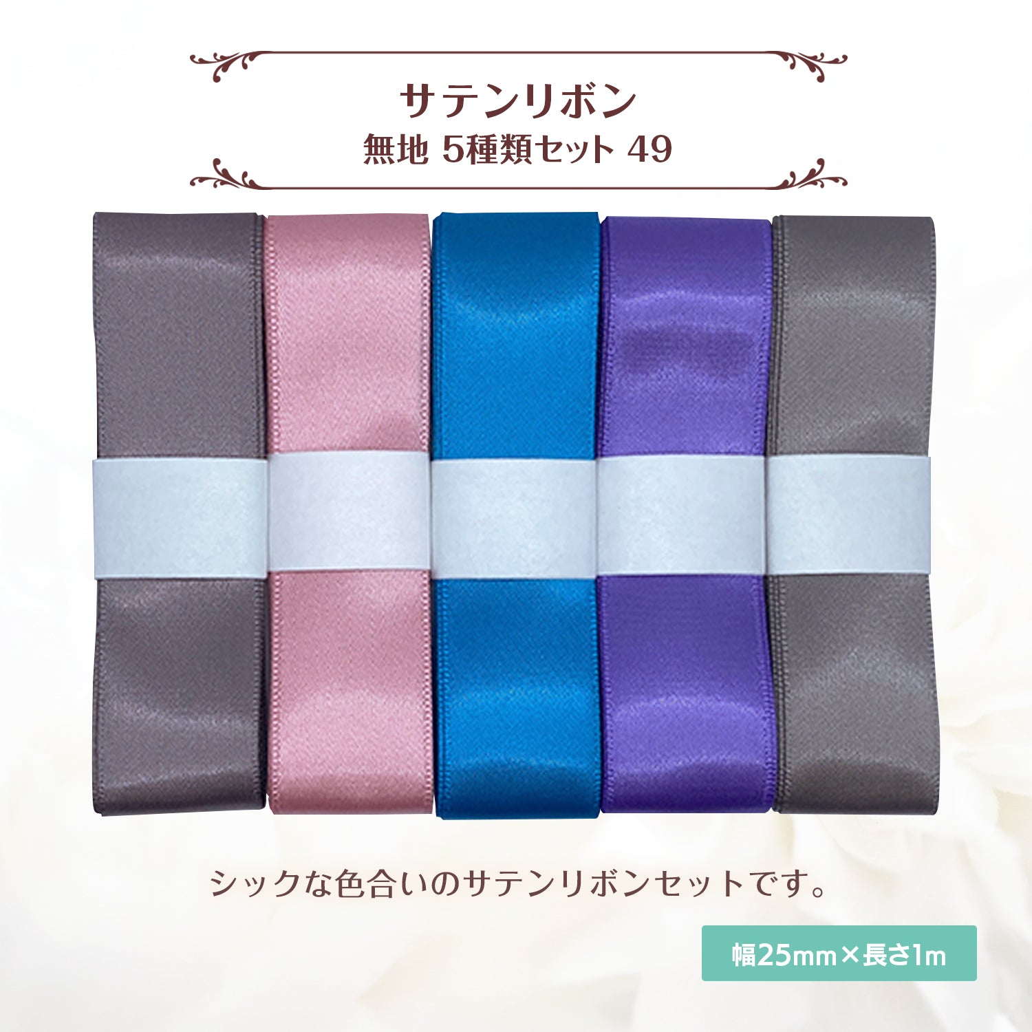 サテンリボン 無地 25mm×1m ギフト 作品 手芸 材料 ハンドメド資材 無地 アクセサリー 包装 ラッピング (5種類セット49)