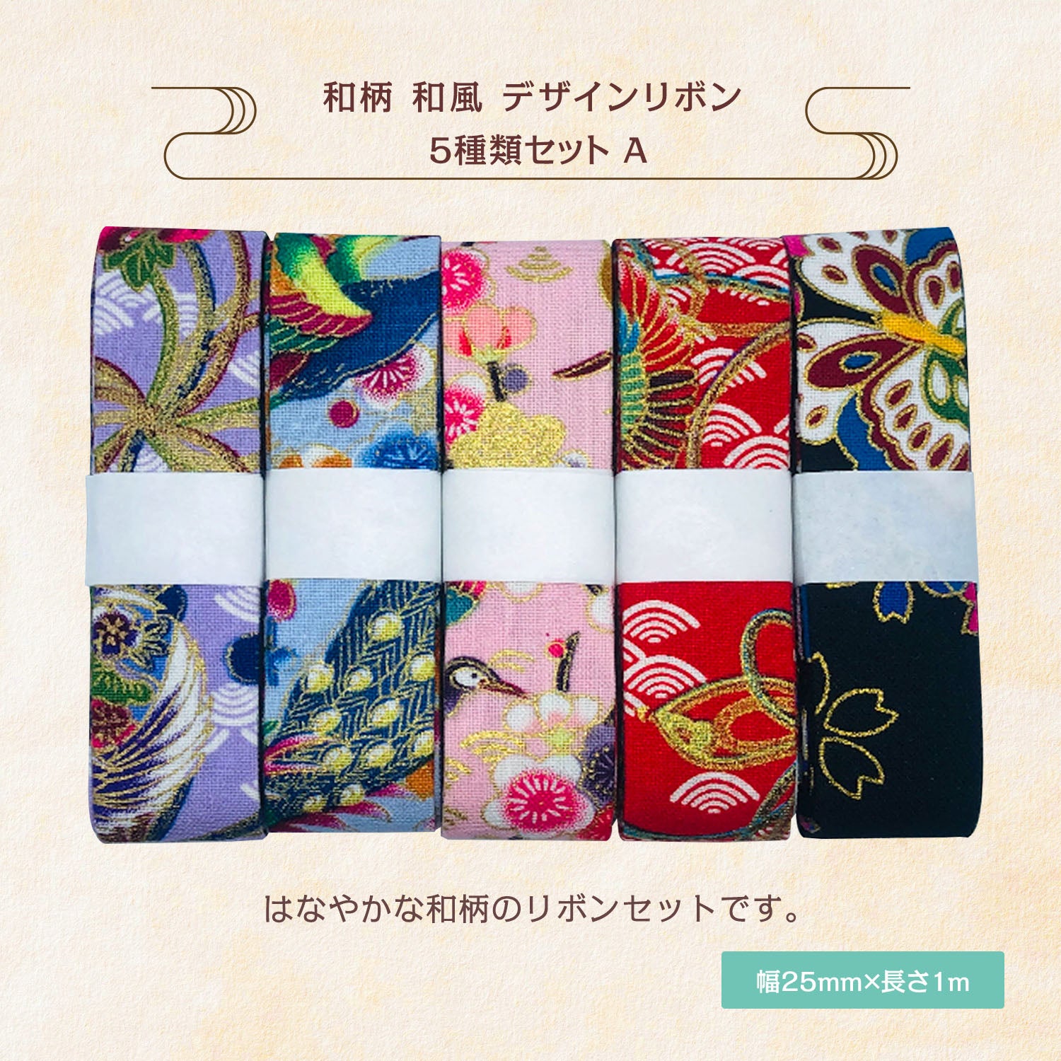 和柄 和風 デザインリボン 25mm ×1m 5種類セット