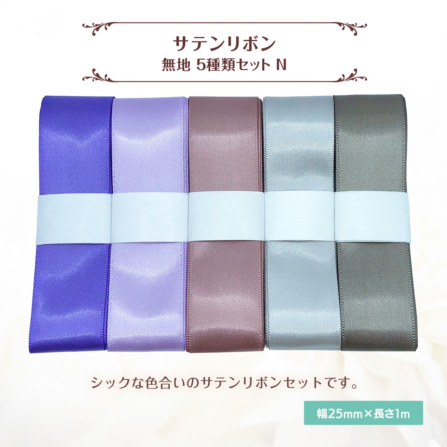 サテンリボン 無地 25mm×1m 5種類セットN
